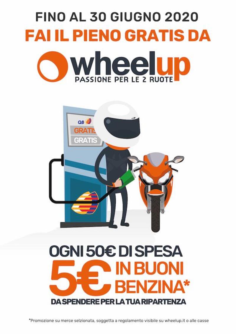 La promozione Fai il pieno gratis con Wheelup prevede il rilascio di un buono benzina da 5,00 euro, utilizzabile presso tutte le stazioni Q8 italiane, anche sui carburanti Hi Perform 100 ottani, ogni 50,00 euro spesi in qualsiasi punto vendita per l’acquisto degli articoli esposti.