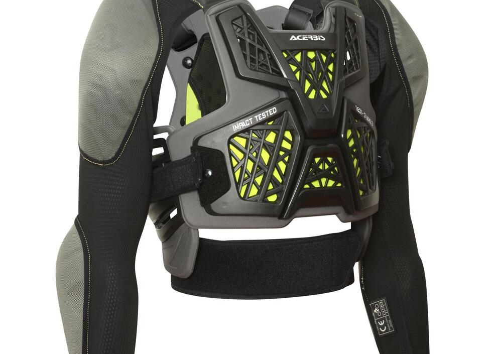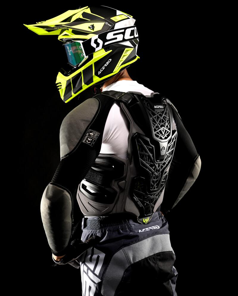 La nuova pettorina Body Armour Spectrum Level 2 di Acerbis è una validissima via di mezzo che coniuga tutti gli aspetti positivi di entrambe le fazioni. Nasce infatti per garantire un'ottima aerazione, protezione e leggerezza.