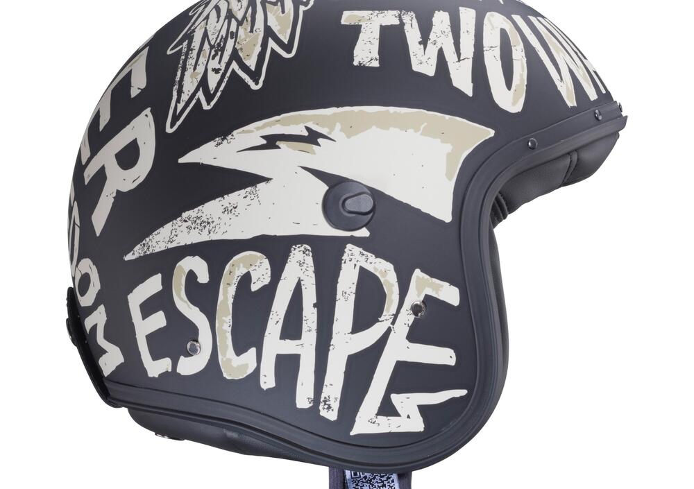 Nella parte posteiriore del casco jet in stile vintage dell'azienda bergamasca Caberg è inserito un passa occhiali serigrafato e a catalogo sono disponibili gli occhiali Century al costo di 48.99 euro.