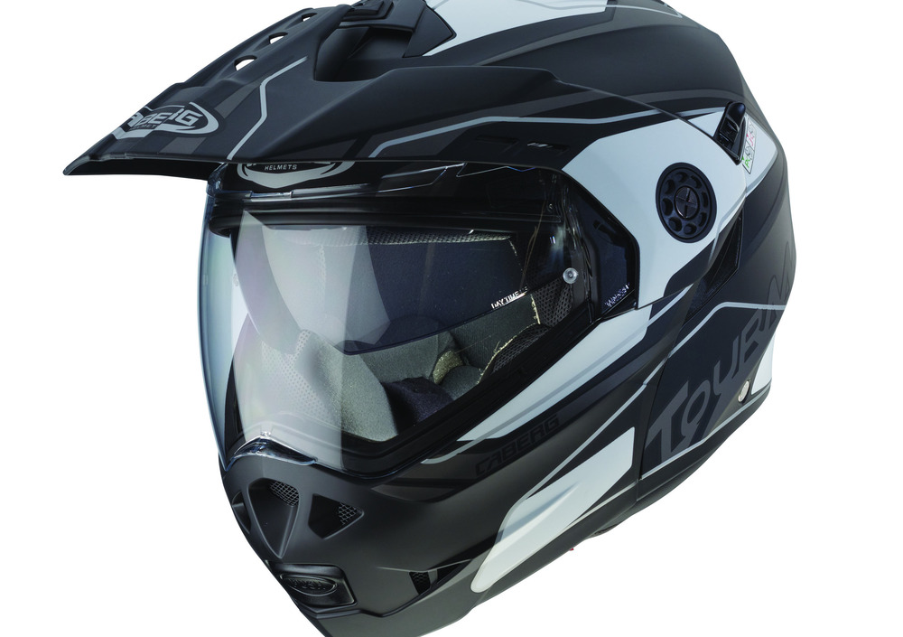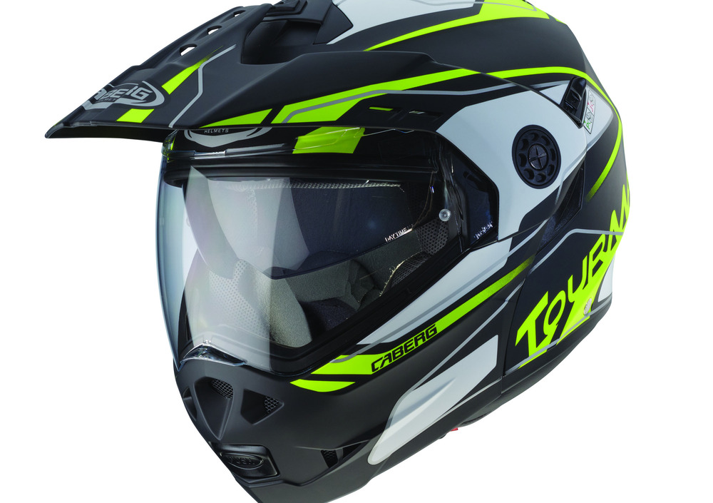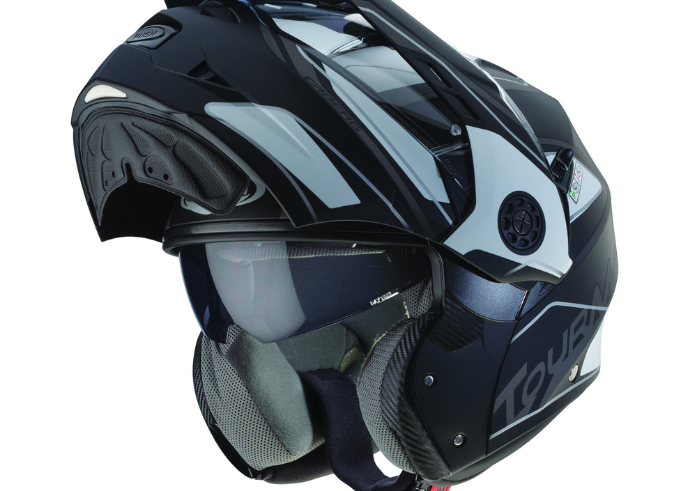 Frutto dell’esperienza maturata da Caberg, Tourmax è 100% Made in Italy e dotato di un frontino che automaticamente si avvicina alla visiera quando viene aperta la mentoniera, per ridurre al massimo la resistenza all’aria.