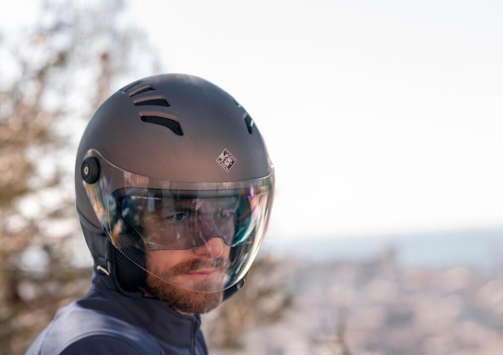 EL’TOP copre tutti i mesi dell’anno e tutte le ore della giornata, anche grazie alla doppia visiera: oltre alla visiera lunga trasparente, è dotato del comodo visierino parasole da abbassare al bisogno. Il che è un gran vantaggio. Come in tutti i prodotti TUCANO URBANO, ogni dettaglio è difatti curato e mirato a garantire la massima praticità e comodità. Ecco, perché l’interno è stato realizzato in microfibra traspirante, anallergica, removibile e lavabile; ed è stato progettato con un innovativo Luxury design in termoformatura che riduce al minimo le cuciture. La cuffia interna è in maxi-rete Aero 3D; i guanciali sono lavabili e staccabili, così come il paracollo realizzato in poliuretano effetto pelle traforato e rete Aero 3D. Il cinturino è dotato di chiusura micrometrica e di passante sottogola in microfibra.