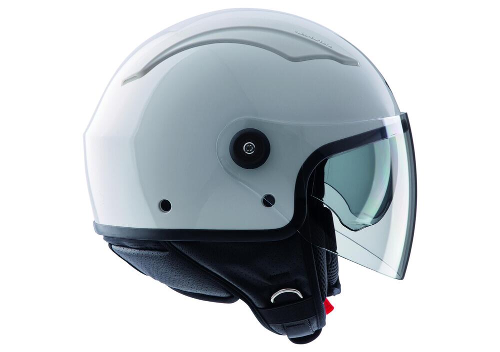 Stampata in materiale termoplastico di policarbonato, la calotta del casco EL’TOP si distingue per l’esclusivo design small fit, dalle linee sport-chic. E sportivi e al tempo stesso sofisticati sono anche i colori proposti da TUCANO URBANO per questo nuovo demi-jet che non vuole assolutamente passare inosservato. Si va dal bianco ghiaccio lucido, che più classico non si può, al grigio carbone opaco, davvero alternativo al solito nero; e si spazia da un particolarissimo blu infinito opaco ad un'altra tinta inconsueta: il bronzo, anch’esso opaco. Su queste quattro tonalità base ci si può divertire a creare mille combinazioni di colore: basta sostituire le cover copri-aerazione tono su tono in dotazione al casco con quelle disponibili come opzionali in un ricco ventaglio di colori.