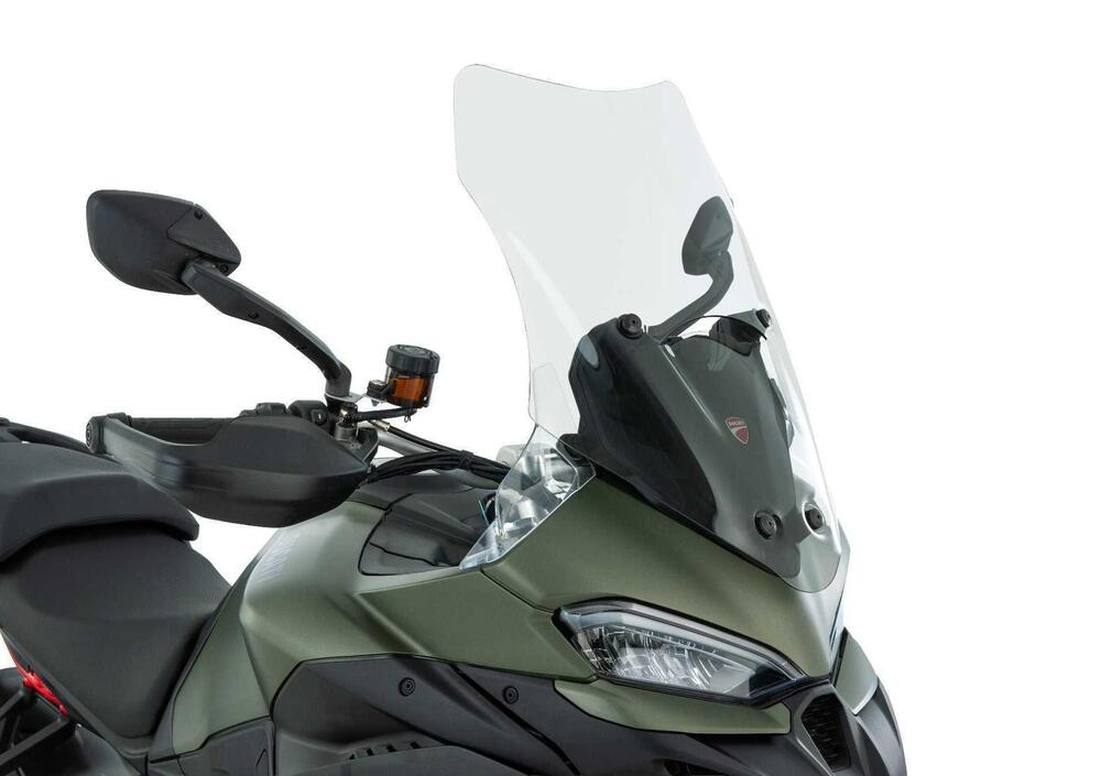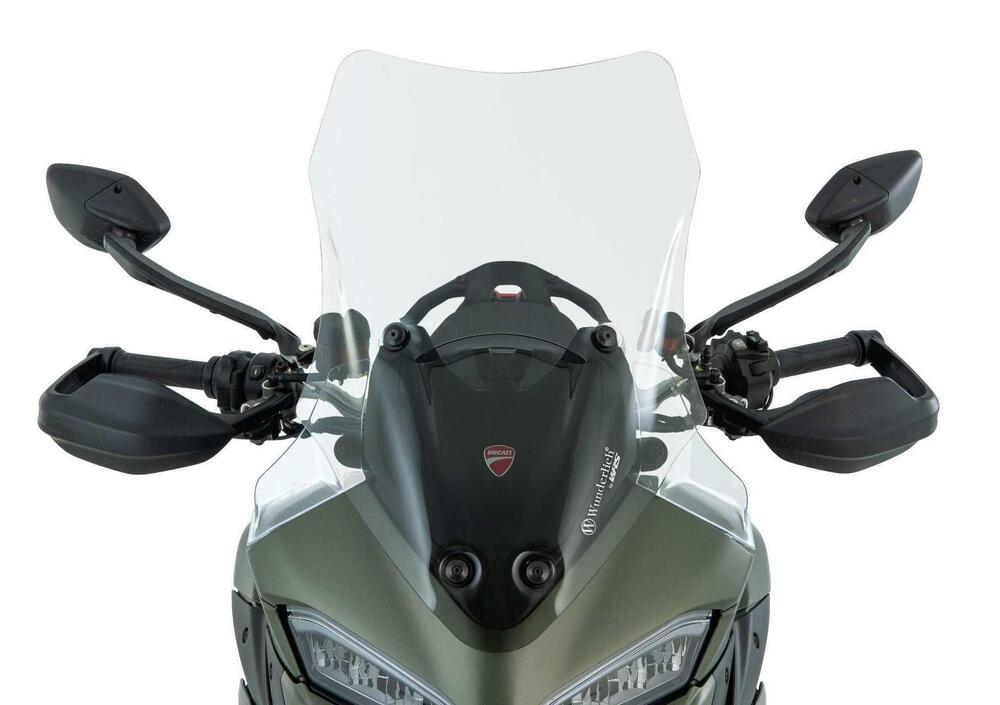 Quando si percorrono molti chilometri in sella alla Ducati Multistrada V2 o V2 S dal 2025 in poi, la differenza tra un semplice viaggio e una vera esperienza di comfort è data dalla gestione dell'aria. Il parabrezza Wunderlich MARATHON nasce proprio per alleggerire la pressione del vento su testa, busto e spalle, riducendo sensibilmente le turbolenze. Rispetto all'equipaggiamento originale, offre dimensioni molto più generose, con un'altezza di 570 millimetri, ovvero 90 in più, e una larghezza di 400 millimetri, guadagnando 30 millimetri.