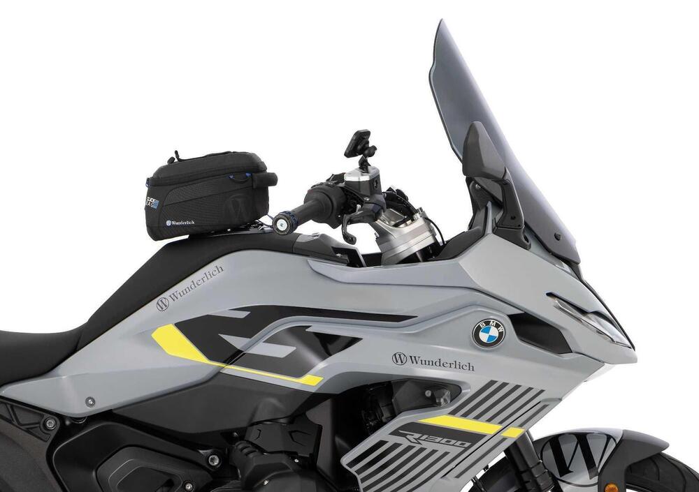 La massima flessibilità è data dalla possibilità di acquistare il parabrezza per la R 1300 R in due modalità, entrambe realizzate a mano in piccole serie in Europa e coperte da 5 anni di garanzia: la versione completa di supporto dedicato è in vendita a 275,78 euro IVA inclusa, sia nella variante trasparente con codice 15151-000 che in quella grigio fumè con codice 15151-009. Per chi invece desidera scambiarlo agilmente con il cupolino SPORT utilizzando lo stesso attacco, è possibile acquistare la sola lastra senza supporto al prezzo di 174,18 euro IVA inclusa, scegliendo tra il trasparente, codice 15151-100, e il grigio fumè, codice 15151-109. Spostandoci invece sulla BMW R 1300 RS, il parabrezza MARATHON si integra coerentemente con le linee della carena e introduce un dettaglio tecnico fondamentale: la sua speciale silhouette frontale è stata modellata per non coprire il radar, mantenendo il sistema Adaptive Cruise Control totalmente operativo. Questa versione specifica per la RS misura 392 millimetri di larghezza e 531 millimetri di altezza, offrendo dimensioni superiori rispetto alla serie e un angolo di inclinazione più pronunciato per deviare i flussi d'aria oltre il casco.