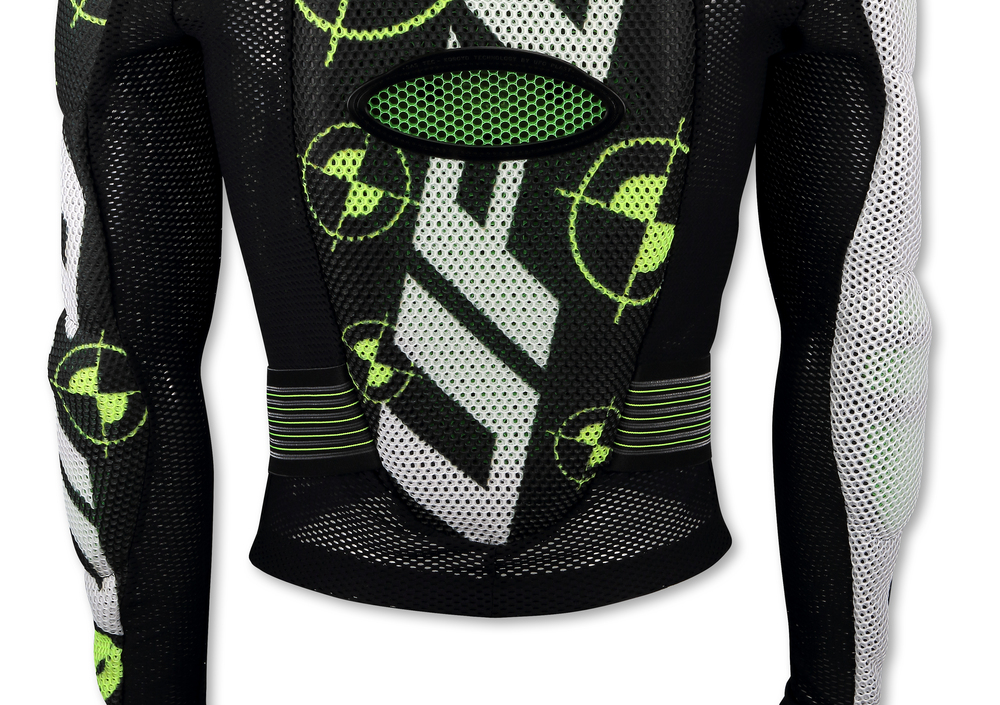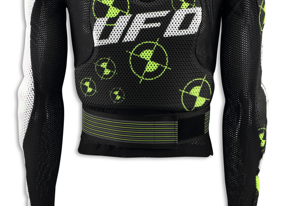 Disponibile in colore nero con grafiche colorate, la Ufo Enigma è proposta nelle taglie S/M, L/XL e XXL, ed è dotata di omologazione CE che la rende in regola per essere indossata anche nelle gare FMI.