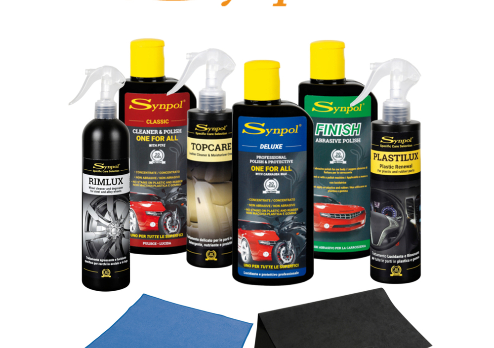 Troviamo poi il Synpol Classic, vero cavallo di battaglia dell’azienda: prodotto unico nel suo genere, in grado di pulire, lucidare e proteggere qualsiasi tipo di superficie e che da quasi trent’anni regala grandi soddisfazioni a chi ama prendersi cura del proprio veicolo.