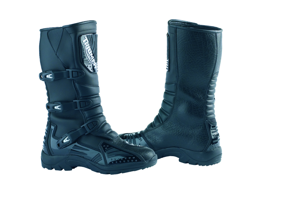 Gli stivali Adventure Boots sono un prodotto ibrido on¬road/off¬road realizzati in pelle impermeabile con rinforzi preformati sulla tibia e protezioni sul tallone e sulla punta. Il comfort è assicurato da tre pratici ganci che consentono di regolare al meglio la chiusura dello stivale.