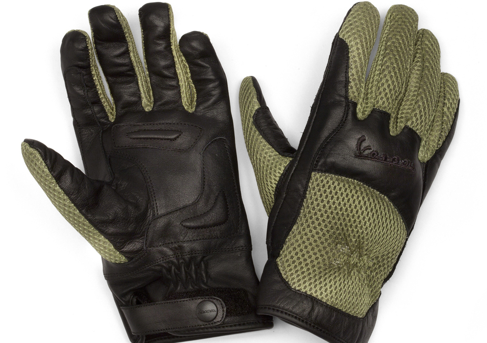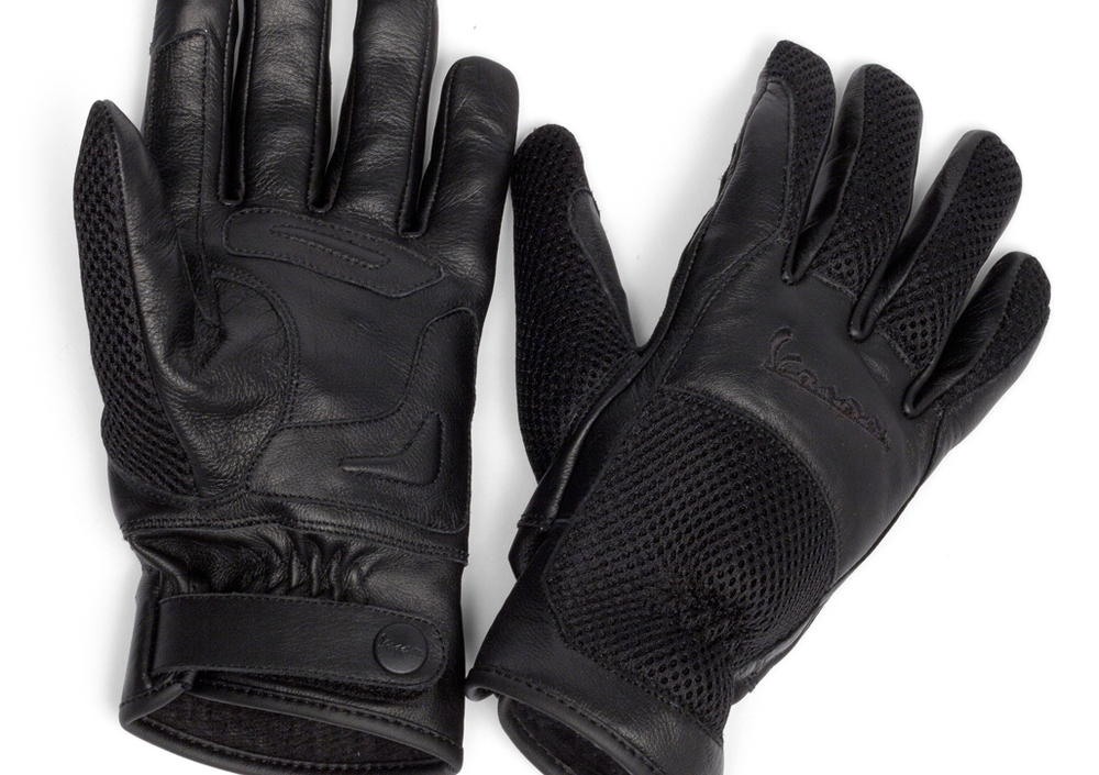 E’ possibile scegliere tra due versioni di guanti estivi, entrambe con palmo rinforzato, sistema di regolazione polso e bottoni personalizzati Vespa: per chi ama essere sempre alla moda, la raffinata combinazione di pelle e tessuto propone cinque varianti colore; chi predilige invece uno stile più sobrio sceglierà i guanti neri in pelle dalla linea classica e con alcune zone perforate che aumentano ulteriormente il comfort. Infine, per chi preferisce la massima semplicità, la scelta ricade sui guanti all season completamente impermeabile, realizzati in pelle.