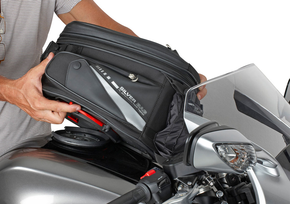 La borsa può essere utilizzata esclusivamente con la flangia dedicata. Realizzata in poliestere e lorica, ha un volume interno estensibile da 14 a 22 litri. Le sue misure sono: 270 x 310 x 200>300 mm (l x p x h). Uno spazio per il navigatore è ricavato sotto la copertina in plastica trasparente superiore. In dotazione cover antipioggia e tracolla.
