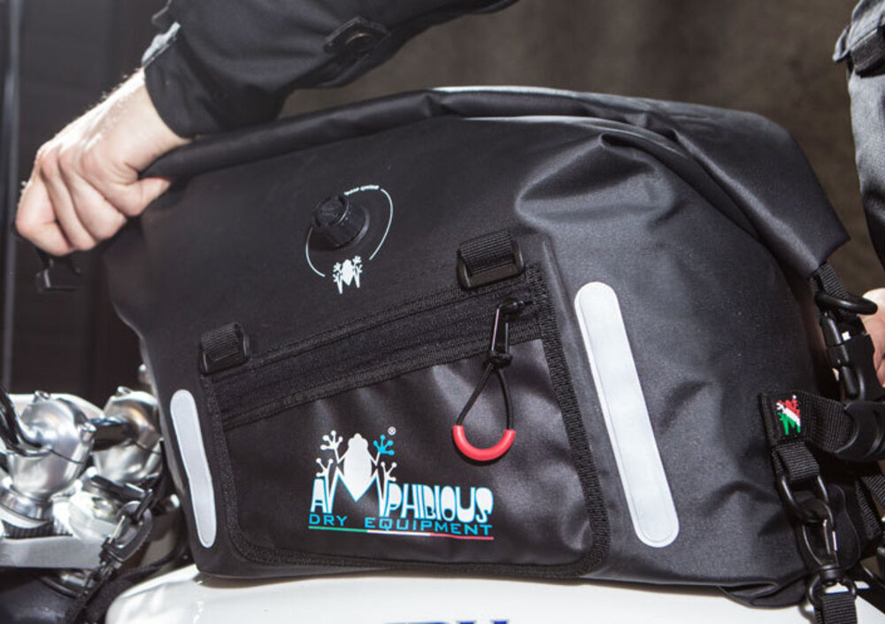 La diversità dei prodotti per le due ruote di Amphibious è dovuta all’esperienza che il marchio ha acquisito producendo contenitori professionali per molte attività outdoor, (non va dimenticato che è partner tecnico del Soccorso Alpino Italiano e della Marina Militare). Molte delle soluzioni tecniche le ritroviamo infatti sulla gamma moto e questo valore aggiunto la rende originale, pratica e universalmente utilizzabile.