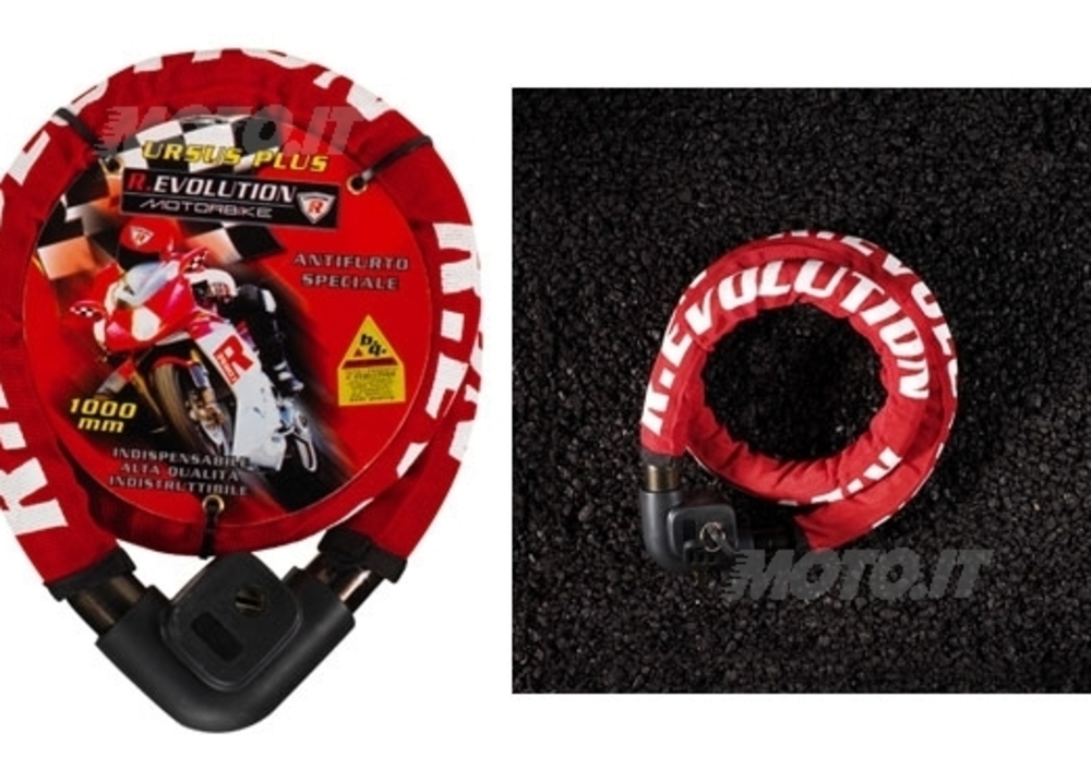 Ricoperto con un tessuto di colore rosso marchiato R.Evolution, Ursus Plus è un antifurto di grande spessore – 22 mm è il diametro della “maglia” - dal look piacevolissimo ma che ha nella sua incredibile forza e capacità di resistere ai tentativi di “scasso” la sua caratteristica fondamentale.