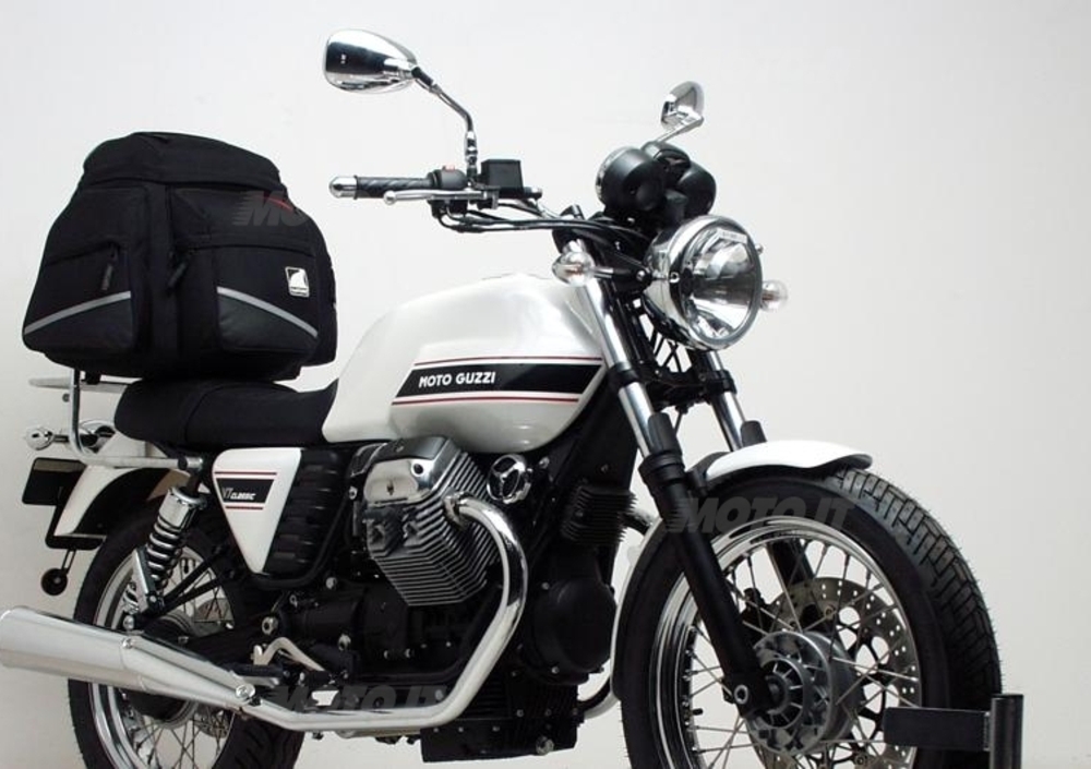 Alcune delle borse compatibili con la Moto Guzzi V7 2009/2013 sono: borsa Ventura Suzuka al prezzo di € 59,69, borsa Ventura Bathurst al prezzo di € 89,19, borsa Ventura Arrow-1 al prezzo di € 81,19, borsa Ventura Sport-Pack II al prezzo di € 32,19, borsa Ventura Aero-Delta VII al prezzo di € 90,00, borsa Ventura Aero-Spada VII al prezzo di € 120,19, borsa Ventura Aero-Rally III al prezzo di € 108,90, borsa Ventura Mistral I al prezzo di € 183,90, la borsa Ventura Bora al prezzo di € 136,37 e la borsa da serbatoio Jarama Tank Bag al prezzo di € 75,00.