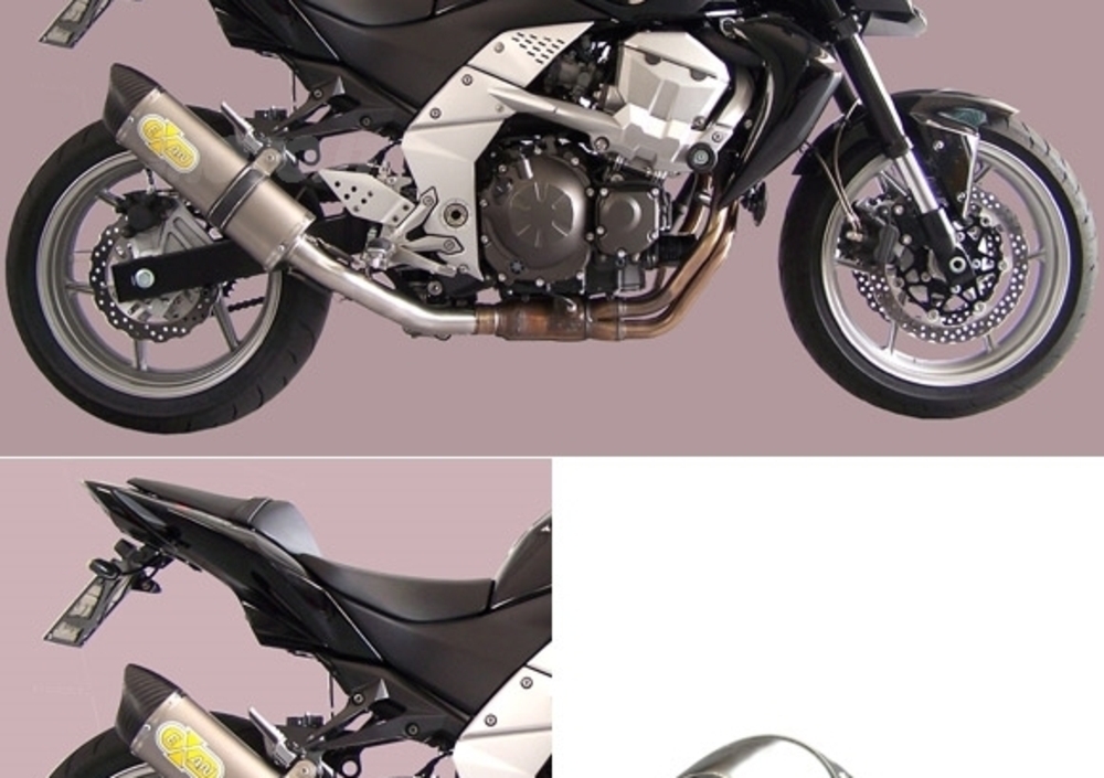 I nuovi silenziatori per la KAWASAKI Z 750 2007 by EXAN sono di forma ovale, hanno il raccordo in acciaio e sono disponibili in tre diversi materiali: Acciaio, Titanio e “Total Carbonio” e possono essere acquistati sia nella versione OMOLOGATA sia nella versione RACING. La versione omologata è dotata di DB Killer estraibile mentre coloro che sono impegnati in campionati, o che della pista fanno la loro unica “strada”, potranno - acquistando la versione Racing - disporre di prestazioni superiori indipendentemente dalla configurazione assunta dalla “street legal”.