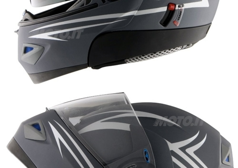 -una mentoniera che, anche alzata, resta compatta e solidale alla linea del casco fornendo un design particolare.