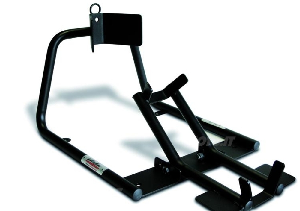 E, una volta arrivati a destinazione, è possibile fissare il cavalletto a terra per la manutenzione della moto, sia in box che in pista.