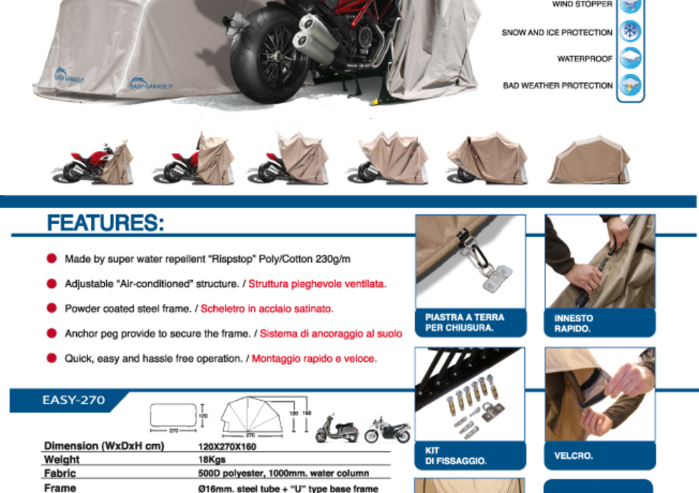 Si tratta di una vero e proprio garage pieghevole su stesso, fissabile anche a terra, anti neve, pioggia, sole, grandine...grazie alla copertura in PVC 500D.