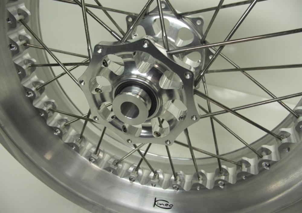 Di particolare rilievo sono inoltre i cerchi realizzati per moto con forcellone monobraccio e trasmissione a catena; caratterizzati da un esclusivo profilo asimmetrico e con punti di ancoraggio dei nippli su un solo lato, costituiscono una vera raffinatezza tecnologica abbinata ad un look di grande impatto.