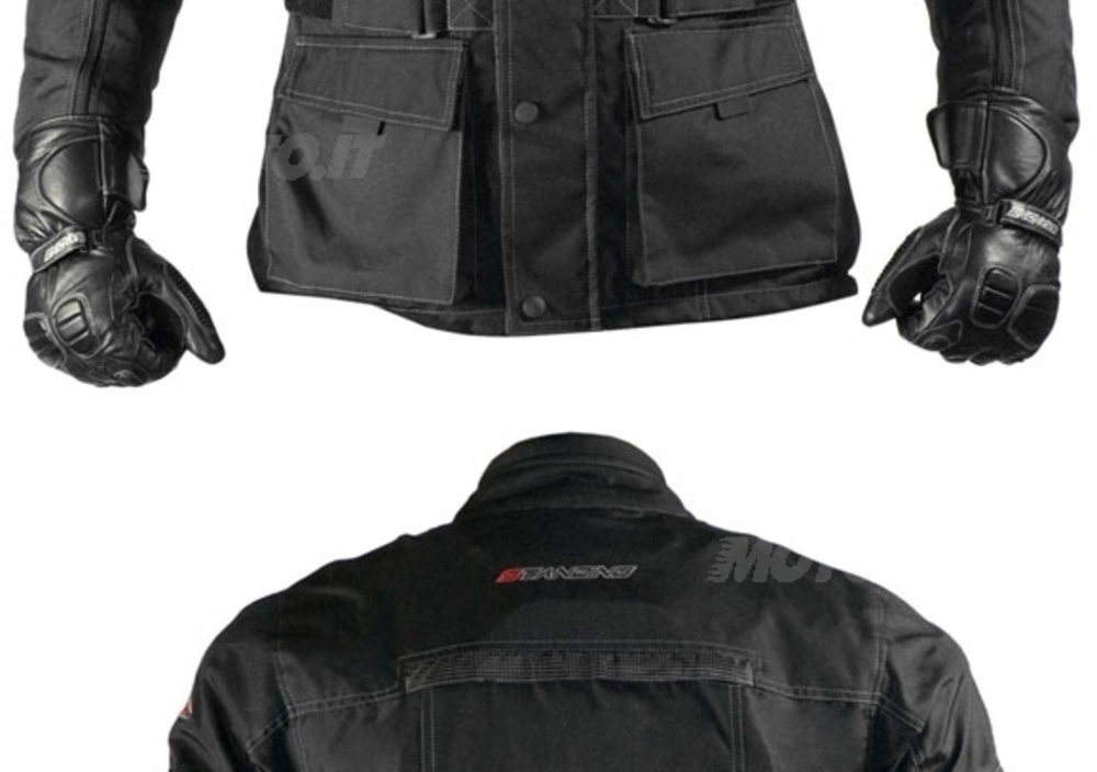 La giacca, costruita in tessuto Maxdura, ha un sistema modulare ed estraibile a doppia fodera, costituito da un giubbotto interno termico trapuntato e da una fodera antiacqua – antivento. La circolazione dell'aria è garantita dalle prese d'aria frontali e dall'estrattore posteriore. Le pratiche regolazioni in velcro su fianchi, polsi e braccia permettono una perfetta vestibilità. Le tasche interne e quelle ampie anteriori assicurano la praticità.
