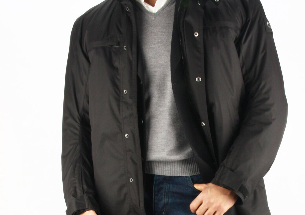 Il giaccone è un doppio strato, confezionato in poliestere Twill e reso impermeabile dalla presenza di una membrana (traspirante) DINTEX® Waterproof (10.000 mm H2O / Breathability: 13.000 g/m2x24hrs).