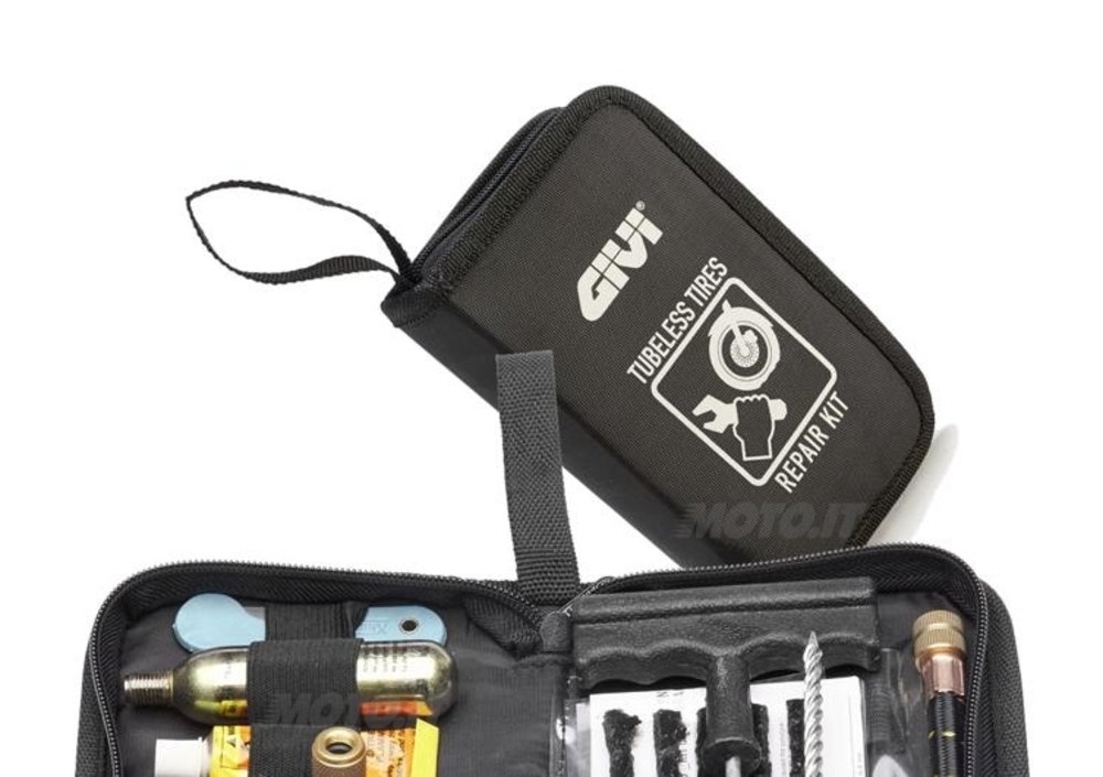 S301 First aid kit. Espressamente realizzato per il motociclista/scooterista, questo “pronto soccorso portatile” (a norma DIN13167) contiene le classiche bende e garze + nastro, ulteriori e comodissime bende autoadesive, forbici, guanti in PVC e un telo d'emergenza. Un kit facilmente realizzabile anche da da soli, che GIVI offre però già pronto all’uso e ben sigillato nella sua borsetta. L’importante è averlo a bordo… e non soltanto quando si parte per un viaggio impegnativo ma in tutte le occasioni che ci vedono in sella. Prezzo al pubblico: 15,50 euro.
