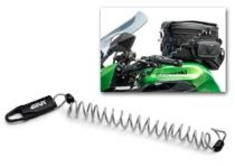 S221 Lock è un lucchetto dotato di cavo in acciao, utilizzabile per bloccare l’apertura delle borse morbide GIVI (dotate di anelli dedicati sulla zip principale) ma utile in molte altre occasioni, come ad esempio quando serve fissare velocemente il casco alla moto durante una sosta breve. Il suo cavo spiralato ha una lunghezza adeguata, il lucchetto si apre a combinazione. Prezzo al pubblico: 8,00 euro