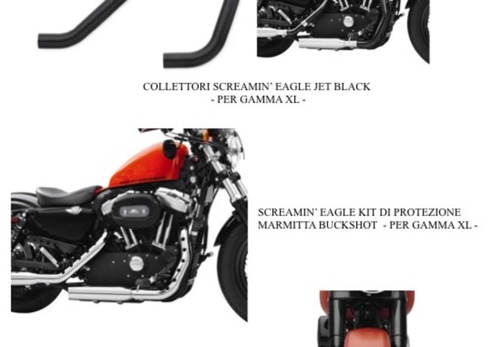 Collettori ispirati agli originali realizzati con una speciale finitura nera lucida particolarmente resistente al calore. L’accessorio, visibile attraverso i fori delle protezioni Buckshot, conferisce un aspetto dark alla moto e permette di celare la scoloritura causata dal calore tipica dei collettori di scarico. Il kit che comprende i collettori del cilindro anteriore e posteriore, è facile da montare utilizzando la sola bulloneria originale. E’ adatto ai modelli XL prodotti dal '07 in poi.