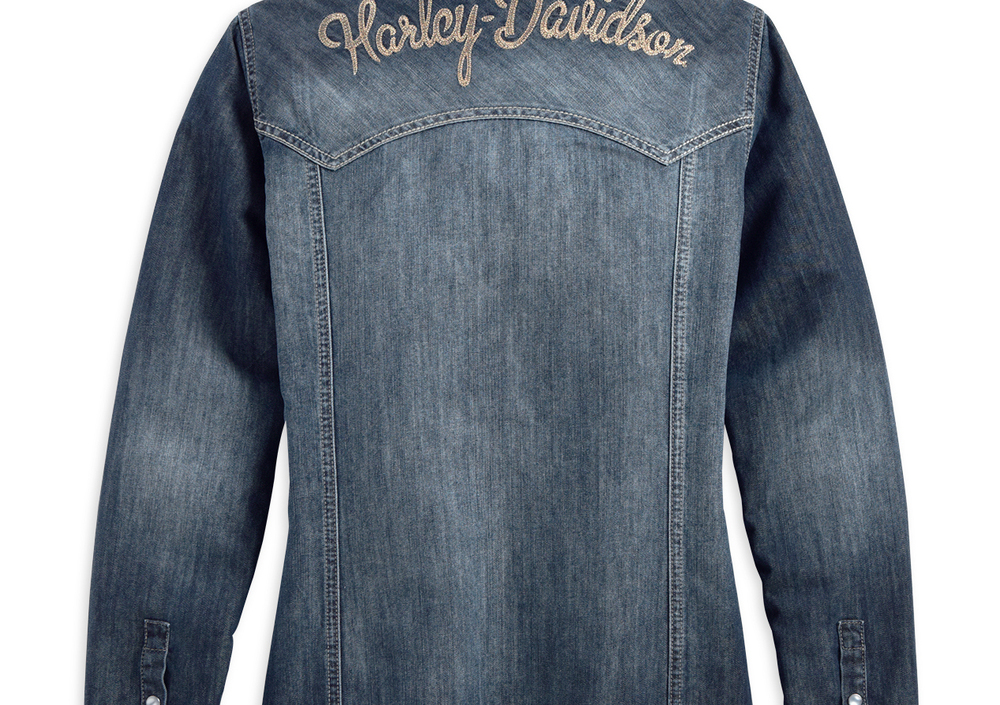 bottoni in madreperla, l’effetto wash del tessuto ed i ricami Harley-Davidson. Una proposta per tutti i giorni e per tutte le occasioni. Disponibile nelle taglie dalla XS alla 2XL. Prezzo al pubblico
