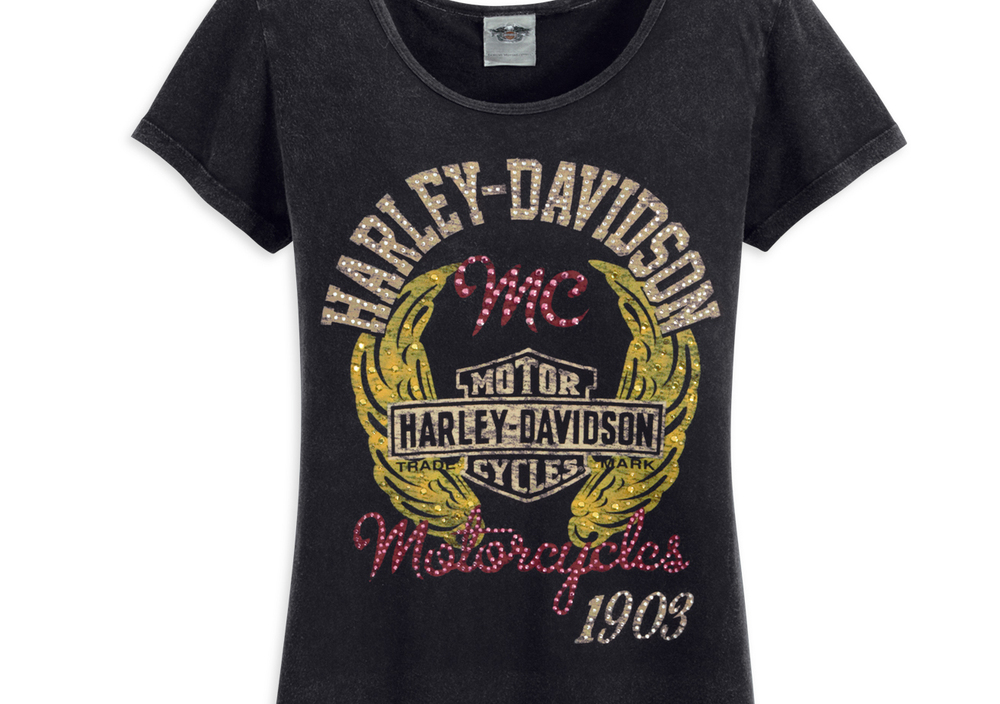 con maniche corte e ampio girocollo. Protagonista della proposta è la stampa Harley-Davidson
