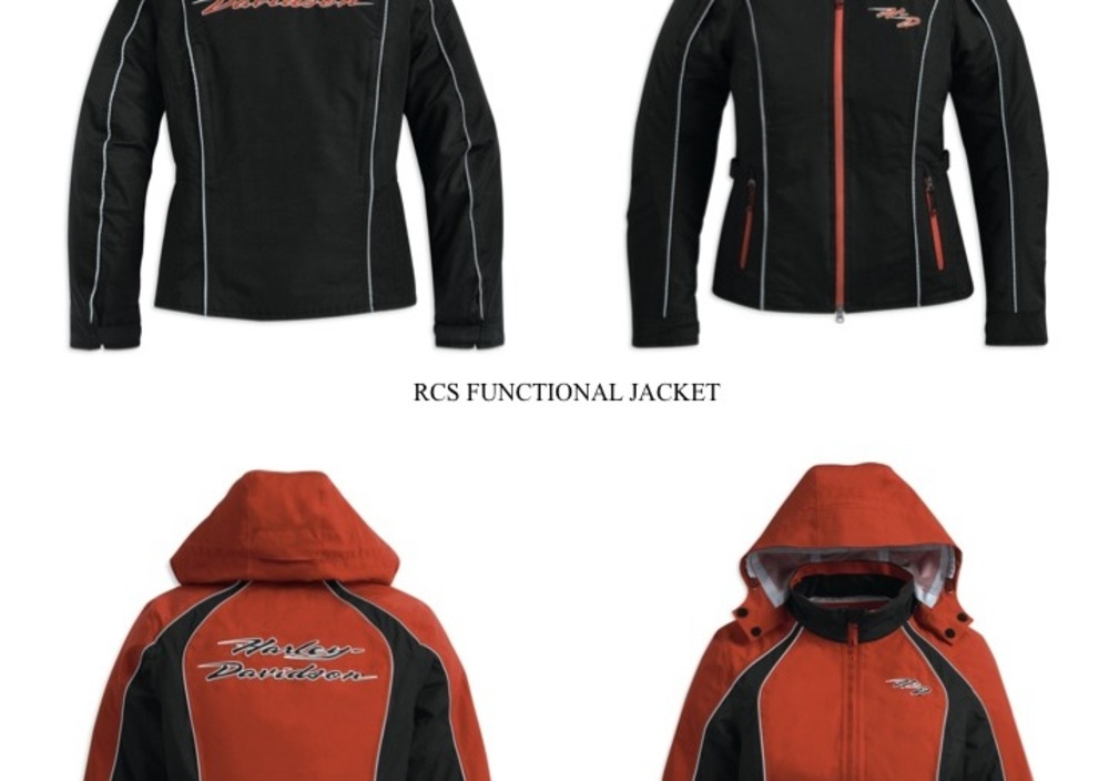 Giacca in nylon impermeabile con interno in tessuto misto sintetico. Due aperture frontali ed altrettante posteriori, agevolano l’afflusso d’aria. In qualità di soluzione tecnica, la proposta dispone di tasche per l’inserimento di protezioni tecniche all’altezza di gomiti, spalle e schiena. Il collo è alla coreana con singolo bottone. La cerniera di chiusura è doppia ed anch’essa al 100% impermeabile. Aperture a soffietto agevolano i movimenti del busto. Le maniche sono sagomate e la vita regolabile. Il capo dispone di quattro tasche per gli oggetti personali, due esterne e due interne. Dettagli in tessuto 3M™ Scotchlite™ad alta visibilità ne percorrono il taglio. Ricami Harley-Davidson, che richiamano le grafiche della collezione RCS, personalizzano la proposta. La RCS Functional Jacket è disponibile nelle taglie dalla XS alla 2XL.