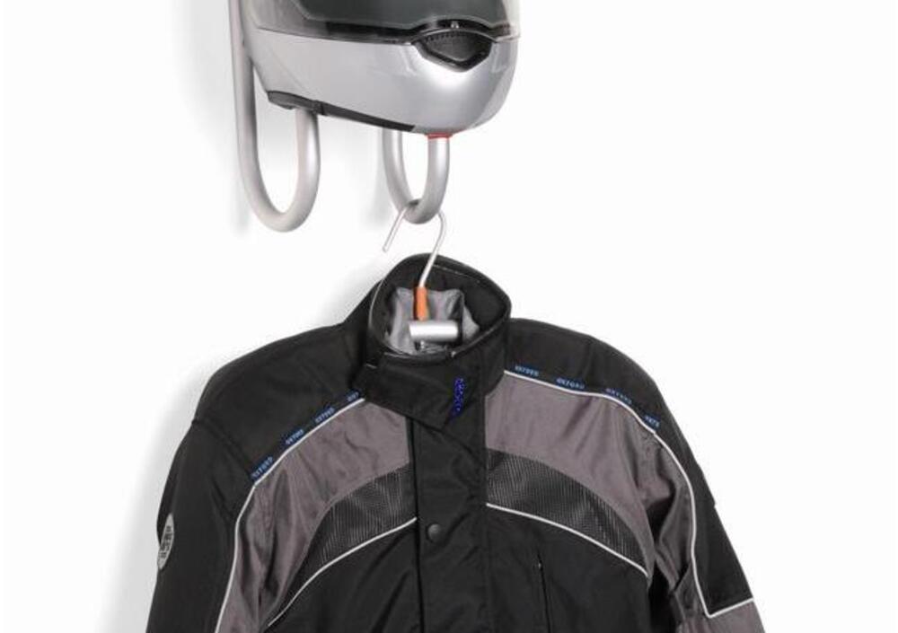 Un “appenditutto” realizzato in tubi di alluminio satinato piegati in modo da creare due comodi appoggi per i guanti (ne favorisce l’aerazione e l’asciugatura) e uno o due (a seconda del modello) comodi poggia casco; in ultimo una gruccia, sempre in stile, per accomodare la giacca.