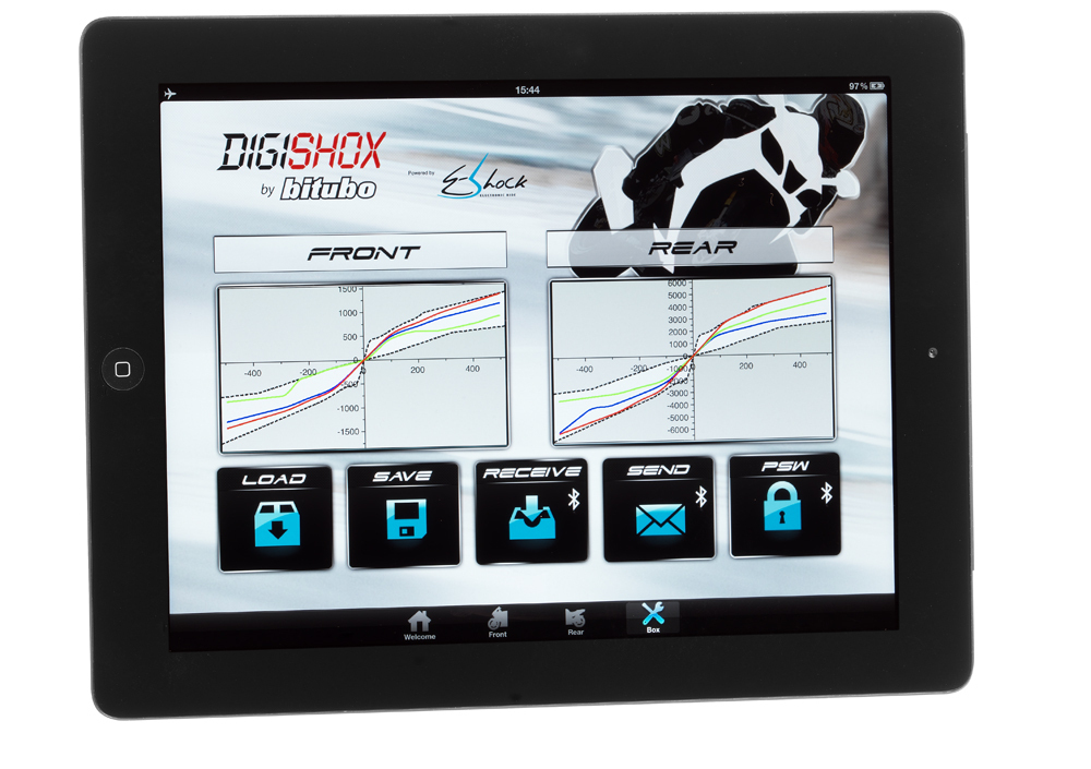 Grazie a questa grande innovazione la normale attività di sviluppo del setup delle sospensioni che di norma viene effettuata dai migliori tecnici specializzati in sospensioni, può essere semplicemente gestita dal software di controllo, senza intervenire ne sulla parte meccanica ne su quella elettronica. Sarà molto facile realizzare curve di smorzamento parametrizzate in funzione di valori quali le accelerazioni, la posizione del gas, il rapporto dei movimenti dell’asse anteriore rispetto al posteriore e viceversa, il sensore di piega E-lean, il sensore di velocità / posizione GPS e gli accelerometri.
