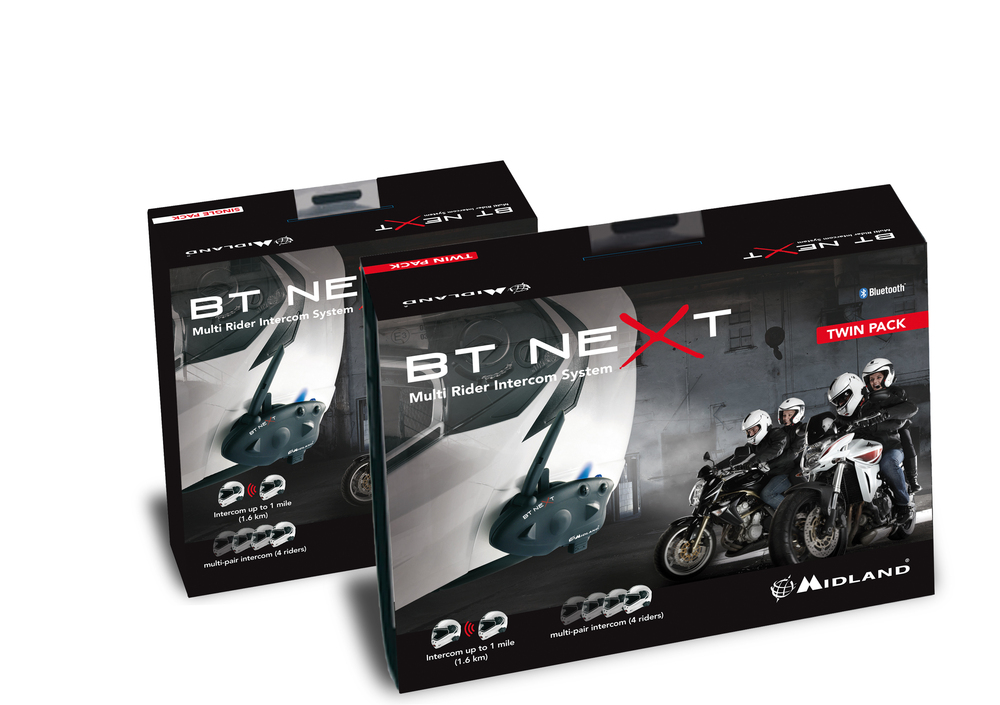 Midland BT Next, BTX1, BTX2, permette le comunicazioni con uno o più gruppi di moto con una distanza massima di 12km.