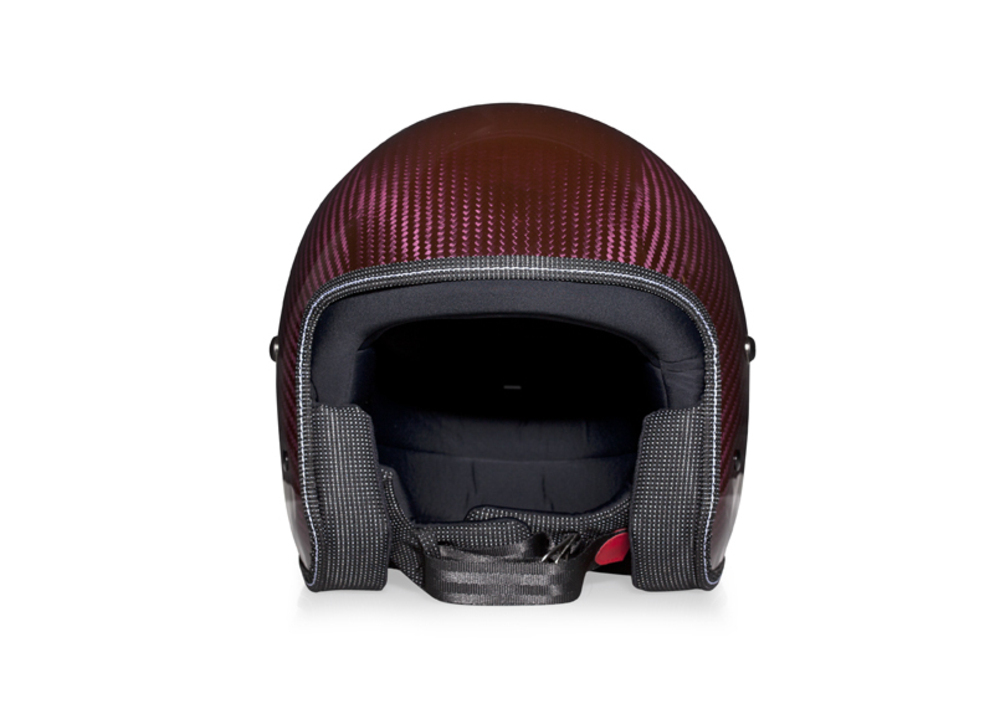 La calotta è interamente in carbonio e carbon Kevlar, materiali che rendono il Jet ultra leggero e sicuro. La nuova collezione punta su una trama più grossa e su delle colorazioni ispirate al mondo delle pietre preziose per enfatizzare l’unicità di questo casco tutto Made in Italy. Il Jet è proposto in quattro varianti di verniciatura trasparente che permette di vedere chiaramente la trama: rosso rubino, blu zaffiro, arancio topazio e carbon kevlar trasparente. Il logo distintivo di Italia Independent è luminescente ed è posizionato sul retro della calotta insieme al passante per chi ama la visiera da pilota.