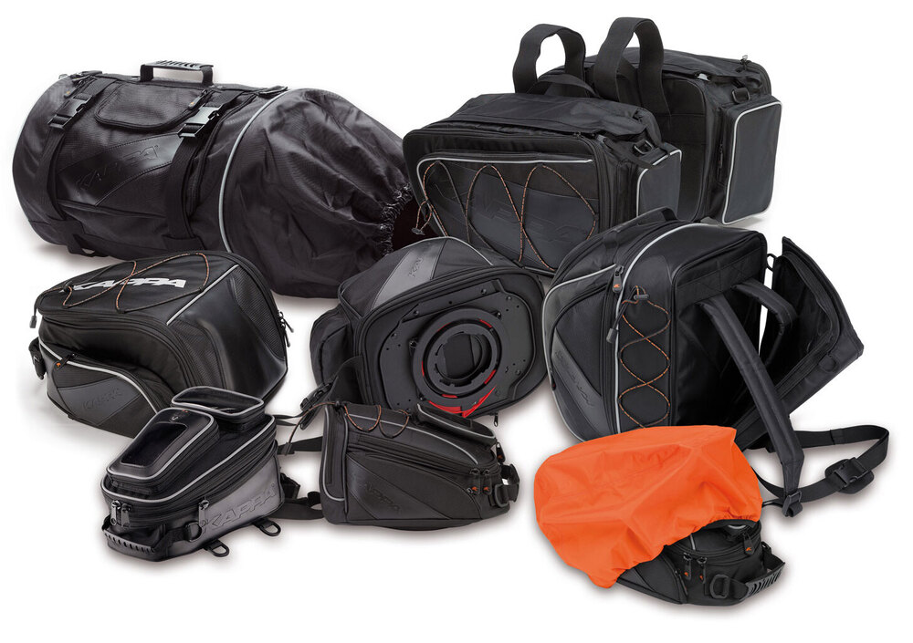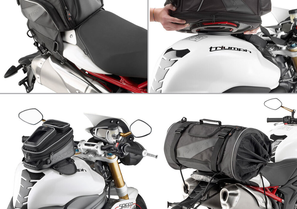 A farla da padrone è la “borsa serbatoio”, che nella gamma RACER di Kappa viene proposta in tutte le salse per dimensioni, forme e tipo di attacco (standard e TankLock).