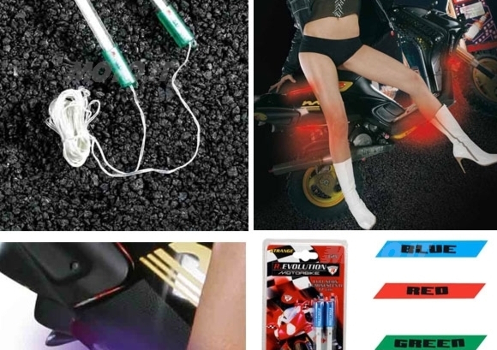 Sotto lo scooter, o moto, si formerà un “disco” luminoso nelle varianti di colore Bianco – Blue – Red – Green e Violet. Le luci R.EVOLUTION STRANGE sono vendute in coppia, hanno forma tubolare e una lunghezza di 17 cm ma sono disponibili anche in moltissime altre misure.