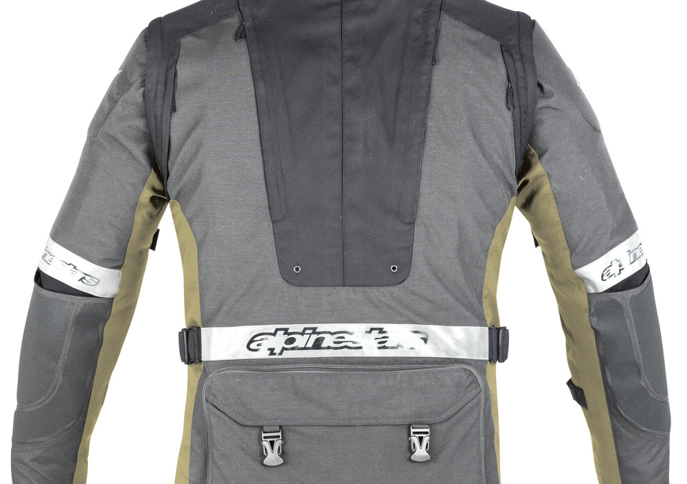 Ed è predisposta per l’attacco a specifici pantaloni moto Alpinestars, tramite l’apposita zip interna in vita. In particolare ai pantaloni Durban, costruiti ovviamente con i medesimi materiali e accorgimenti, con l’aggiunta di inserti in pelle nella zona interna delle gambe e con la possibilità di utilizzare la cerniera posteriore per aggiungere le apposite bretelle. Questi pantaloni tecnici sono dotati di articolazione brevettata Vector sulle ginocchia, vantano anch’essi due tasconi esterni impermeabili al 100% e sono abbinabili agli stivali Adventure e Touring di Alpinestars.