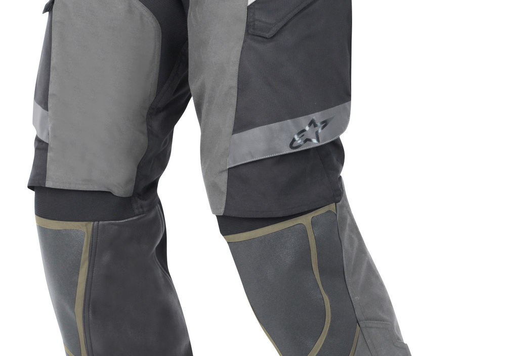 Un innovativo pannello elasticizzato piazzato sull’avambraccio consente la massima libertà di movimento e, nel contempo, la riduzione del numero di cuciture. Sulle braccia, le prese d’aria e le feritoie di scarico a zip agevolano la ventilazione interna, mentre i dispositivi di regolazione dei volumi e le membrane laterali favoriscono la vestibilità e minimizzano i fastidiosi adatta per tutte le stagioni. Anche questa giacca è chiaramente predisposta per l’attacco ai vari pantaloni Alpinestars, tra a partire dagli stessi Excursion, che ne condividono ovviamente materiali e soluzioni tecniche. Sono quindi dotati di fodera termica removibile, e godono di protezioni antiurto GP]R omologate CE su ginocchia e stinchi, di imbottitura in polietilene sui fianchi e di bordini rifrangenti integrati. Inoltre si possono scegliere con gamba normale o più corta, e con vestibilità “precisa” oppure più abbondante, sempre con pratiche membrane di espansione che consentono di vestirli sopra gli stivali.