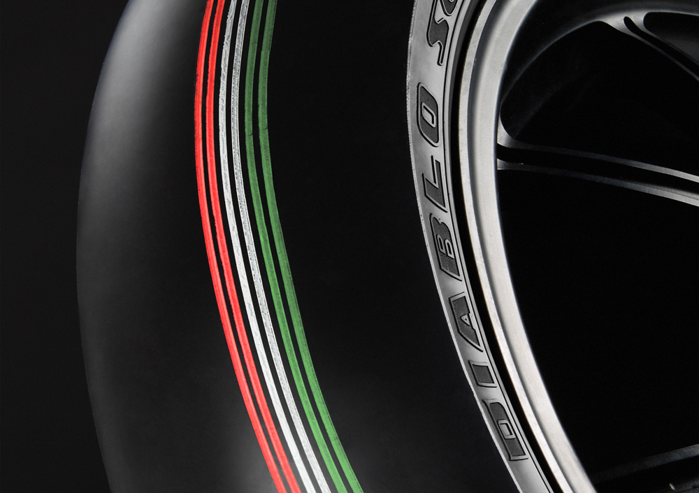 Gli pneumatici Diablo Superbike, appositamente sviluppati per la Superpole sul circuito di Monza, sono caratterizzati da tre strisce di colore verde, bianco e rosso, disegnate sul battistrada e da un’etichetta sul fianco personalizzata per l’occasione con il logo "150th Italy".