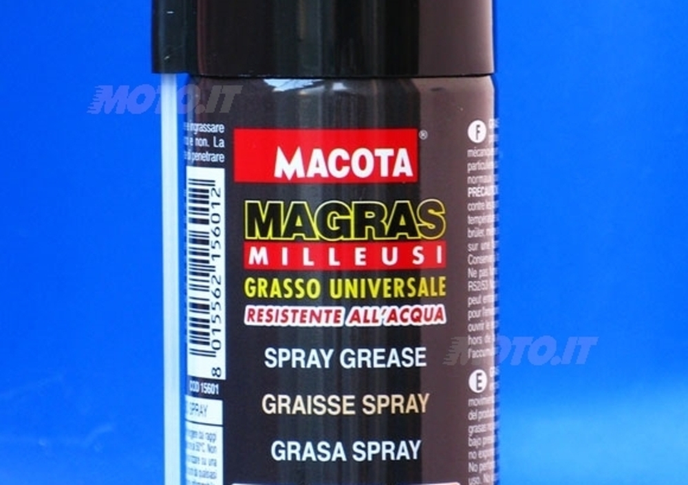 Per certi versi potremo definirlo un prodotto nuovo, polivalente, che grazie alle sue specifiche tecniche può spingersi ben oltre ai classici lubrificanti sintetici. Denominato Magras, il rivoluzionario grasso spray di Macota è un composto chimico ad alta viscosità ideale per proteggere ed ingrassare qualsiasi organo meccanico: sia statico che dinamico. La sua speciale composizione lo rende particolarmente fluido tanto da consentirgli di penetrare laddove prodotti analoghi non hanno nessun campo di azione. Catene di trasmissione o ingranaggi ad alta velocità sono alcuni fra gli elementi ove Magras può interagire migliorandone il funzionamento nel tempo senza nessun rischio di espulsione per effetti di centrifuga. Macota Magras evita l’indurimento e protegge metalli o contatti elettrici dall’acqua e dalla corrosione, preservando con cura le parti trattate dall’attacco dei vari agenti atmosferici. E’ disponibile in due comode confezioni spray da 100 ml. (3,00 euro) e da 400 ml. al costo di 4,90 lire IVA esclusa. Servizio Clienti: Tel.: 0571 450184 Fax. 0571 450185 infomacota@macota.it