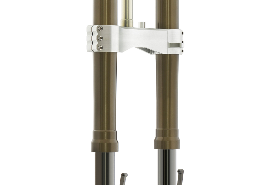 diametro stelo 43-45 ed è stata studiata per l’equipaggiamento di moto ad alte prestazioni (1000 c.c.- Moto 2 – ecc.). Si possono apprezzare le caratteristiche delle innumerevoli regolazioni quali compressione alte e basse velocità, precarico molla, estensione, livello olio. Per il miglioramento della scorrevolezza, gli steli della forcella, sono rivestiti in CVD (Laf. Diamond), le aste, i foderi e le cartucce interne sono tutti anodizzati duro e lappati per diminuire il coefficiente di attrito. I piedini forcella sono realizzati in Ergal dal pieno con tecnologia CNC attraverso uno studio e una progettazione con Cad 3D e analisi FEM per il corretto dimensionamento e la massima leggerezza. Caratteristiche Tecniche: Regolazioni: Precarico molla, B.v. Registro Compressione, A.v.Registro Compressione, Registro Estensione, Registro Livello Olio, Foderi Anodizzati Duro 40micron + Lappatura Ra 0.08, Stelo d.43-45 con trattamento CVD (Laf. Diamond 10000 HV), Attacco pinza radiale int.108, Corsa int. 120mm, Attacco parafango.(Possibilità di richiedere piastre di sterzo in Ergal ricavate dal pieno.)