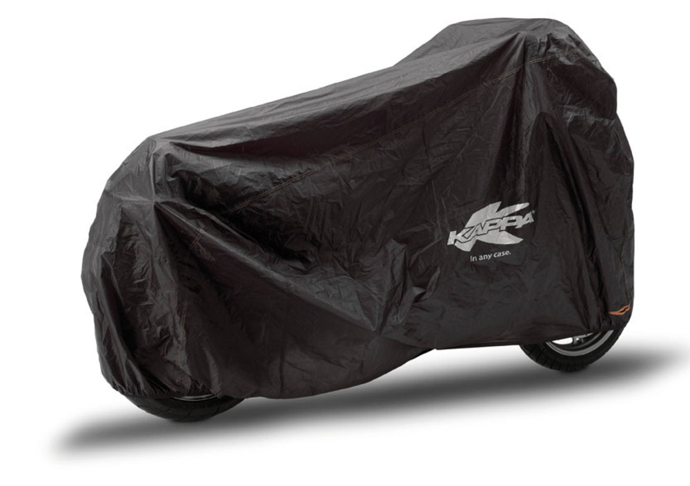 KS201: Un bel telo che protegge moto e scooter dagli agenti atmosferici. Qui il poliestere raggiunge lo spessore 210D, è garantisce sempre impermeabilità al 100%.Il telo si fissa al mezzo tramite le due cinghie alla base e gli anelli di passaggio per la catena antifurto. Due le taglie: L per scooter, naked e sportive e XL per maxiscooter e mezzi dotati di parabrezza e bauletto. Prezzo al pubblico 32 euro.