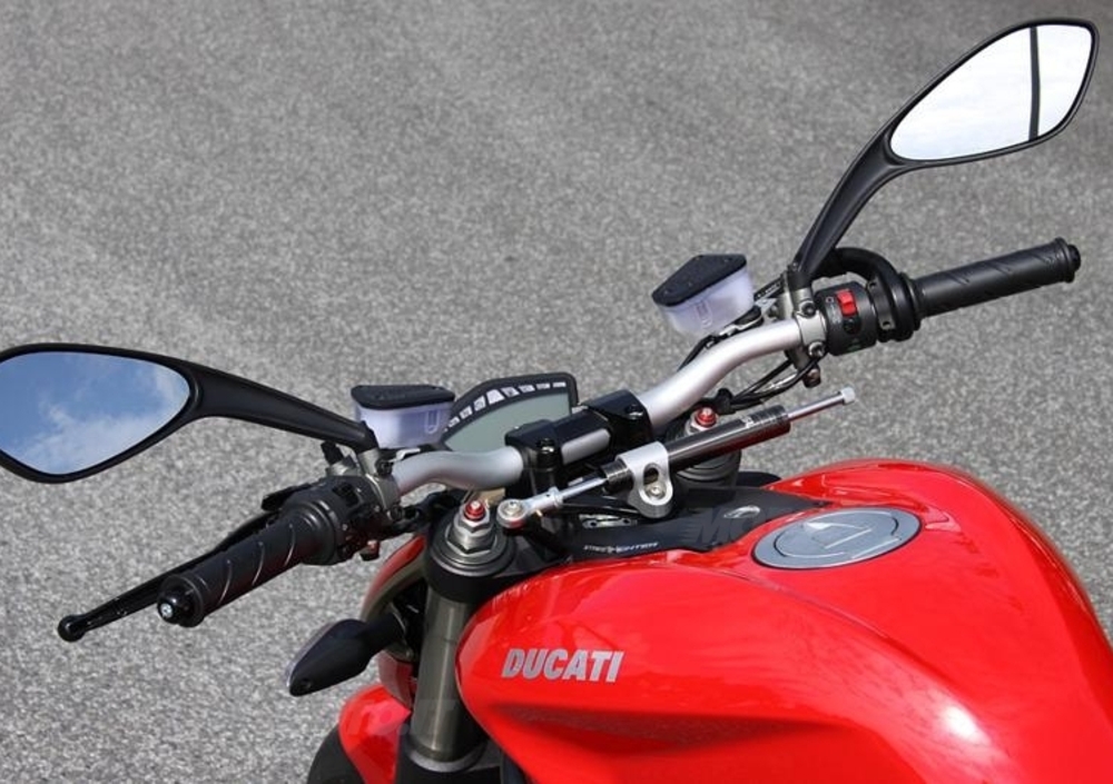 Nuovissimi serbatoi olio freni ricavati dal pieno con finestrella di controllo nei colori nero ed alluminio, kit paracarena e motore con nuovi tamponi ad assorbimento, nuove pedane a doppia regolazione disponibili anche con dispositivo per cambio rovesciato uso racing pista, le nuove leve regolabili a sei posizioni nelle versioni lunghe e corte ed altri accessori per migliorare il confort e l’utilizzo della vostra moto.