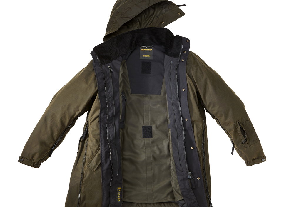 Zip a doppio cursore YKK perimetrale, dal polso al fondo della giacca