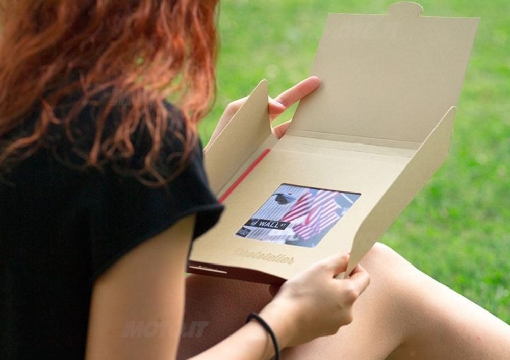 L’album è stampato con qualità fine su carta di prestigio x-per Fedrigoni e rilegato con copertina rigida. Ogni album Phototeller è confezionato in una scatola personalizzabile.
