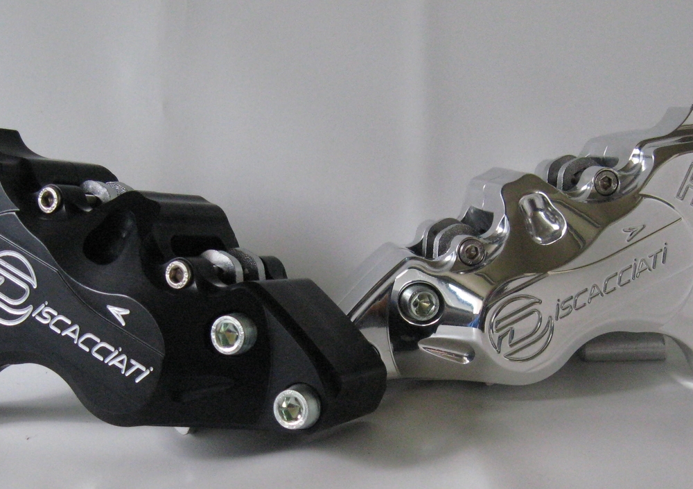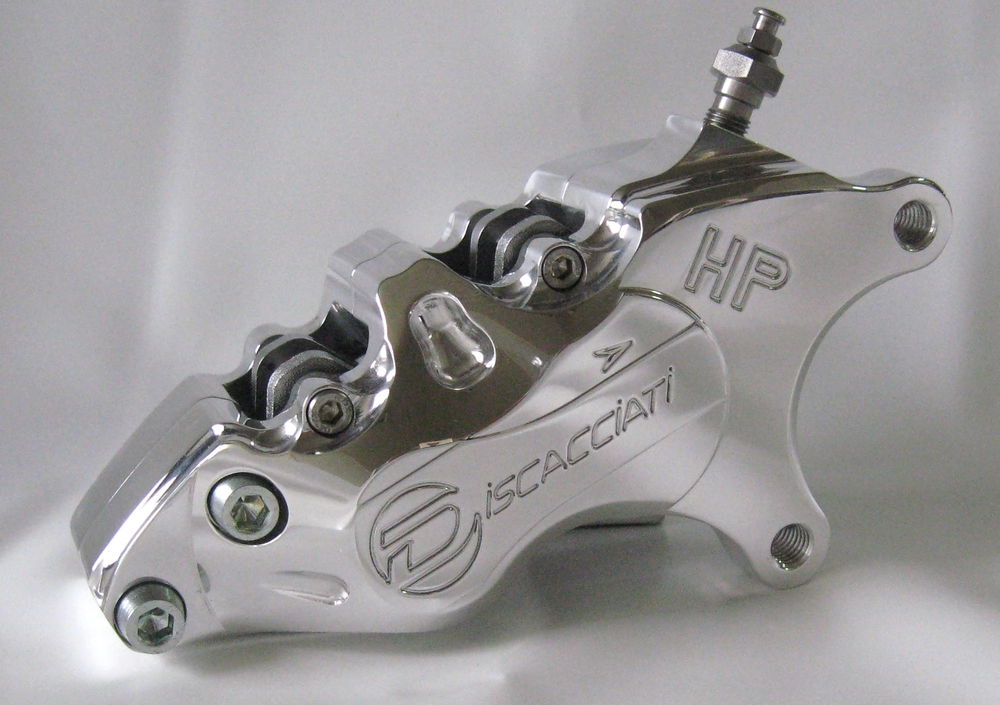 Utilizza pistoncini in alluminio di diametri differenziati (32 mm post-34 mm ant) per garantire un'usura uniforme delle pastiglie. Trattati con ossidazione dura e rettificati per un'ottimale scorrevolezza, i pistoncini presentano una particolare foratura che garantisce una maggiore ventilazione ed evita, quindi, eccessivi aumenti di temperatura dell'olio dell'impianto frenante (tecnologia di derivazione GP). La pinze Discacciati HP sono disponibili con finitura lucida o anodizzata nera e, su richiesta, con finitura nichelata.