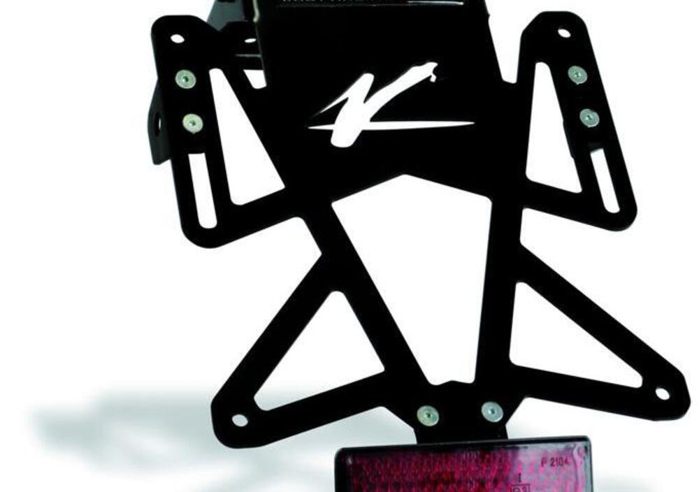 Il grado di inclinazione e i supporti delle frecce sono ad altezza variabile e il montaggio non richiede alcuna modifica alla moto, il catadiottro è compreso e anche l'altezza della piastra è variabile.