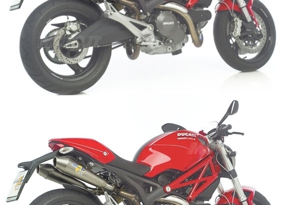 Ovale: corpo silenziatore e collettore in acciaio inox AISI 304. Coppa d’uscita conica. Rivestimento esterno in alluminio o carbonio. Carter di protezione stivale passeggero in fibra di carbonio. Omologati CE.