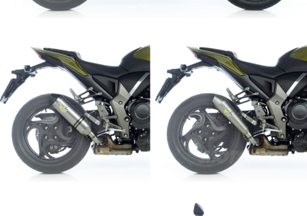 Factory: corpo silenziatore in full titanio con coppa d’uscita e fascetta di ancoraggio al telaio in fibra di carbonio. Collettore in acciaio inox. Rivestimento esterno in titanio o carbonio. Omologato CE.
