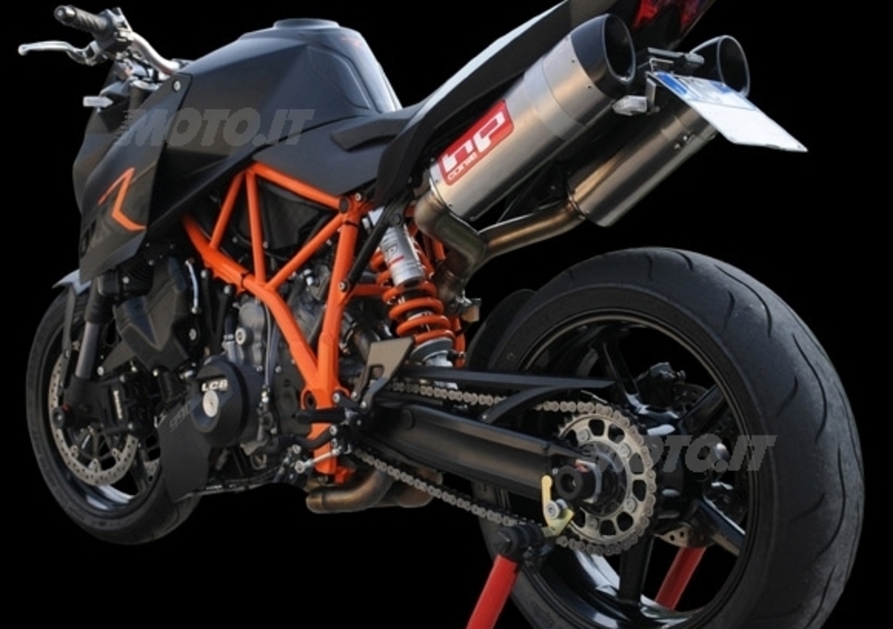 Per la KTM SUPERDUKE, HP Corse presenta i silenziatori di forma ovale della linea SPS EVO_1.
