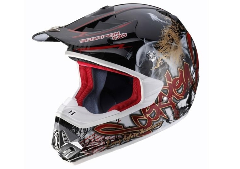 Progettato per garantire una sicurezza totale, il nuovo casco Scorpion VX-17 AIR modello ETERNITY presenta motivi affascinanti con scritte e disegni in stile “Grafiti” che ne sottolineano e rafforzano il carattere.